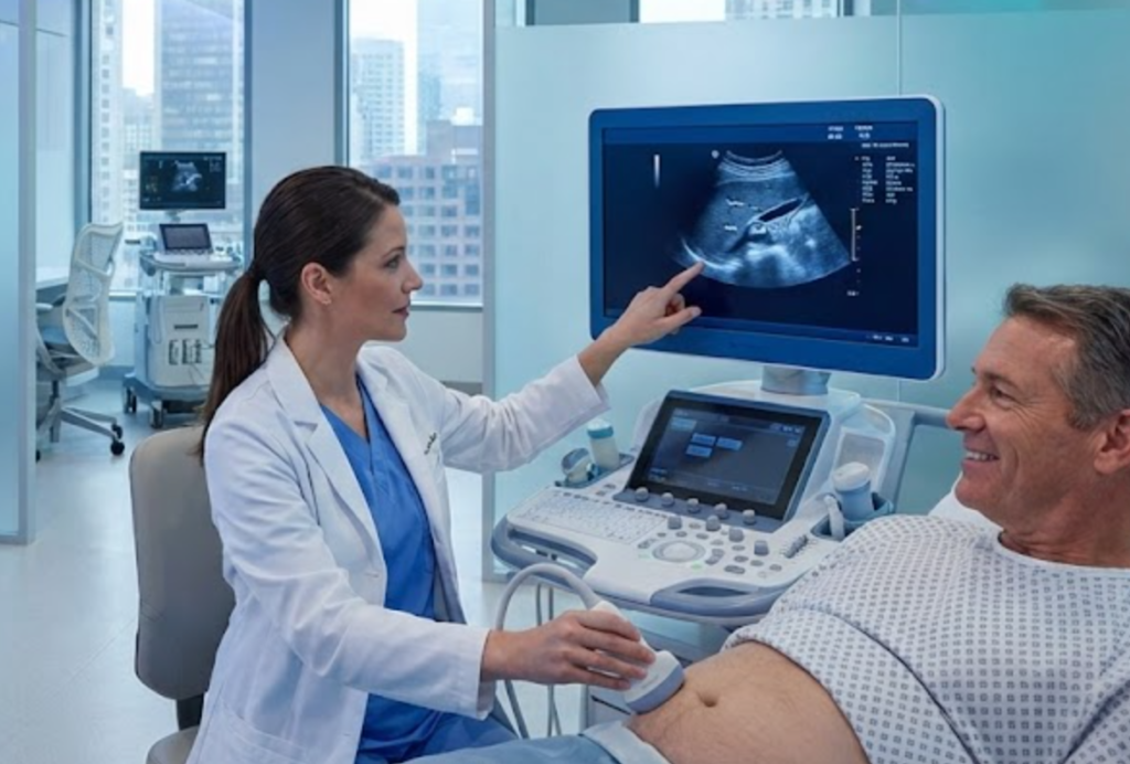 Diagnóstico inmediato: El médico radiólogo o tecnólogo especialista puede ver en tiempo real si el hígado brilla más de lo normal (signo de grasa).